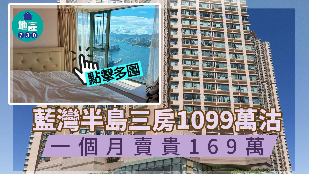 二手樓成交|(有相)藍灣半島量跌價升 全海套三房1099萬沽 一個月賣貴169萬
