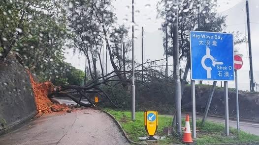 石澳大浪灣道6米大樹倒塌 橫跨行車線全線封閉