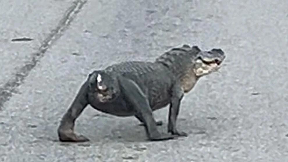 斷尾鱷魚馬路慢行嚇人怪異 網民:遠看以為是狗(有片)