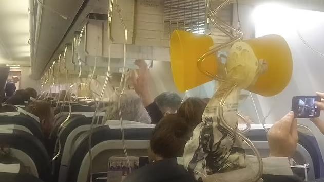 客機急墜,大部分氧氣罩掉落。(互聯網)