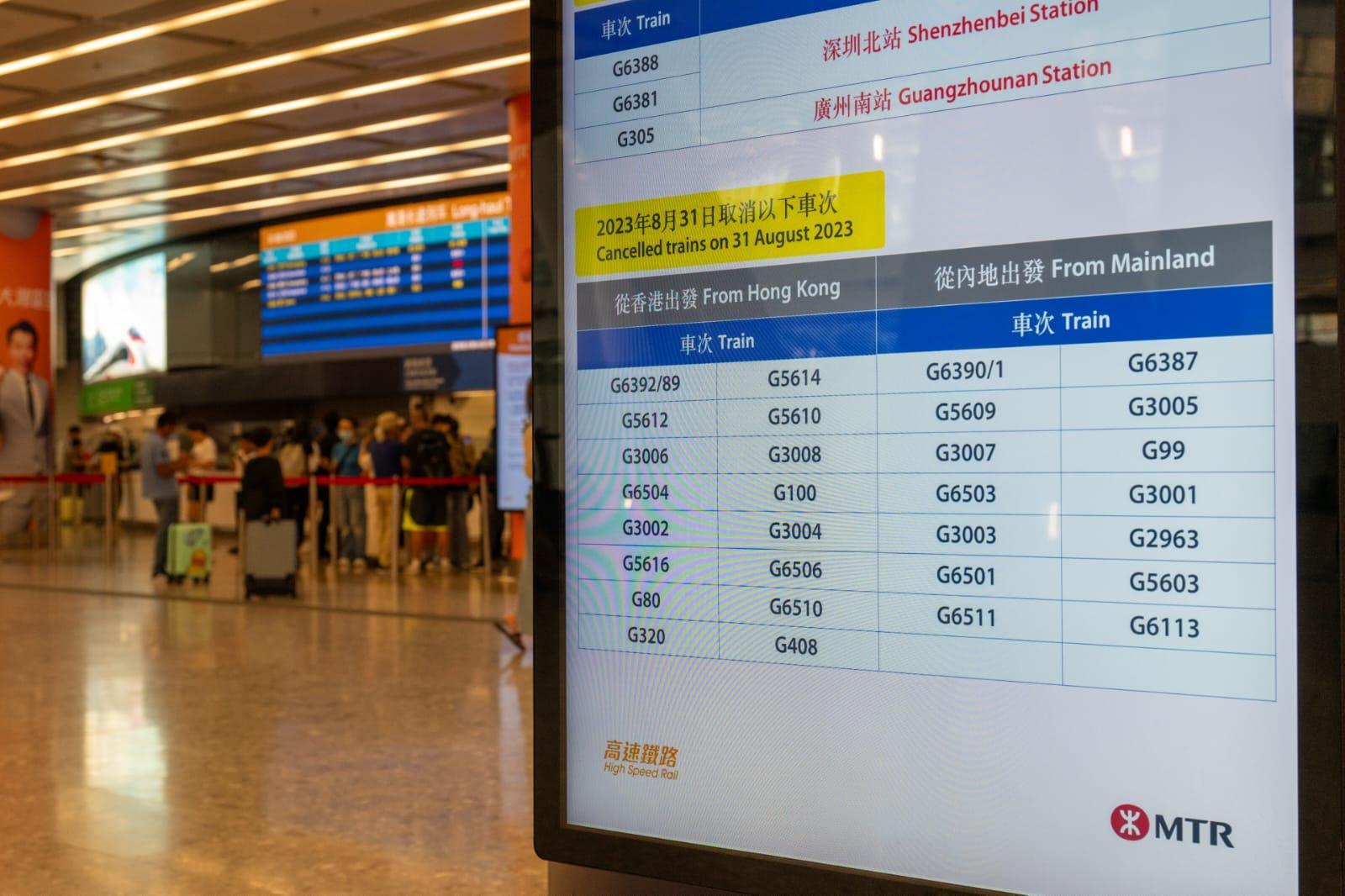 颱風蘇拉|港鐵宣布受風暴影響 今日至下周一部分高鐵班次會有調動或取消