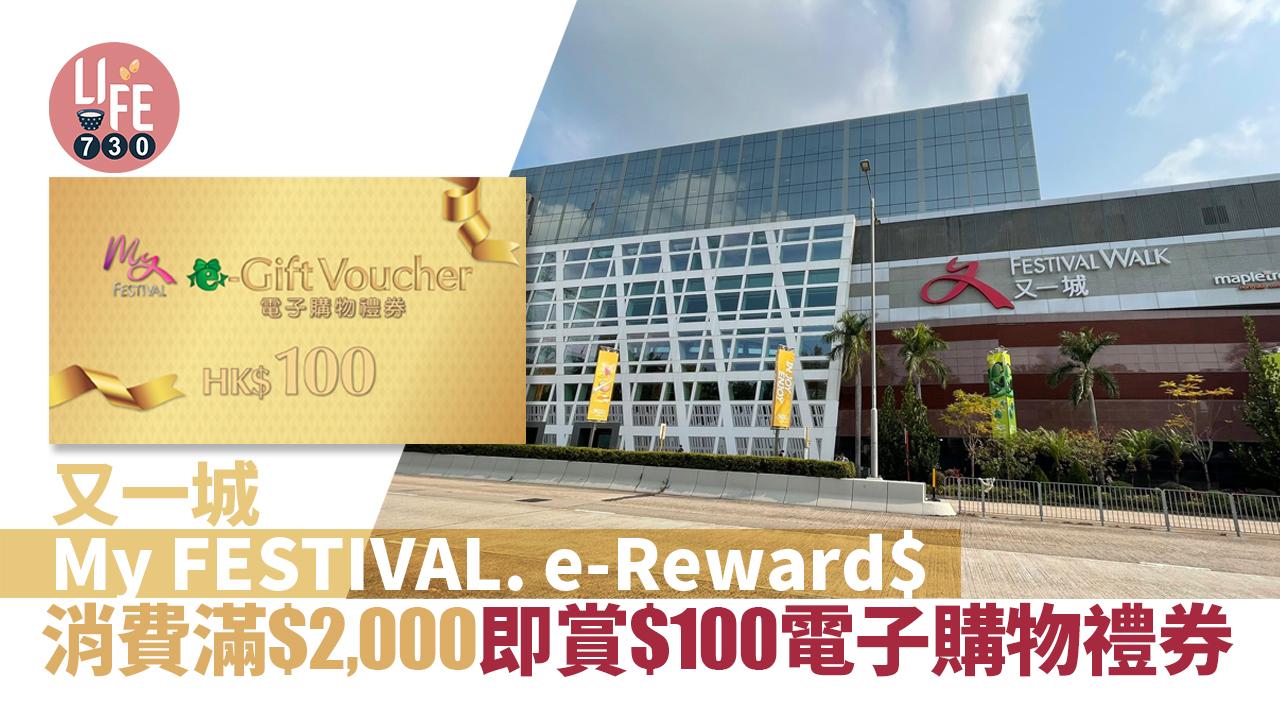 又一城My FESTIVAL. e-Reward$ 消費滿$2,000即賞$100電子購物禮券
