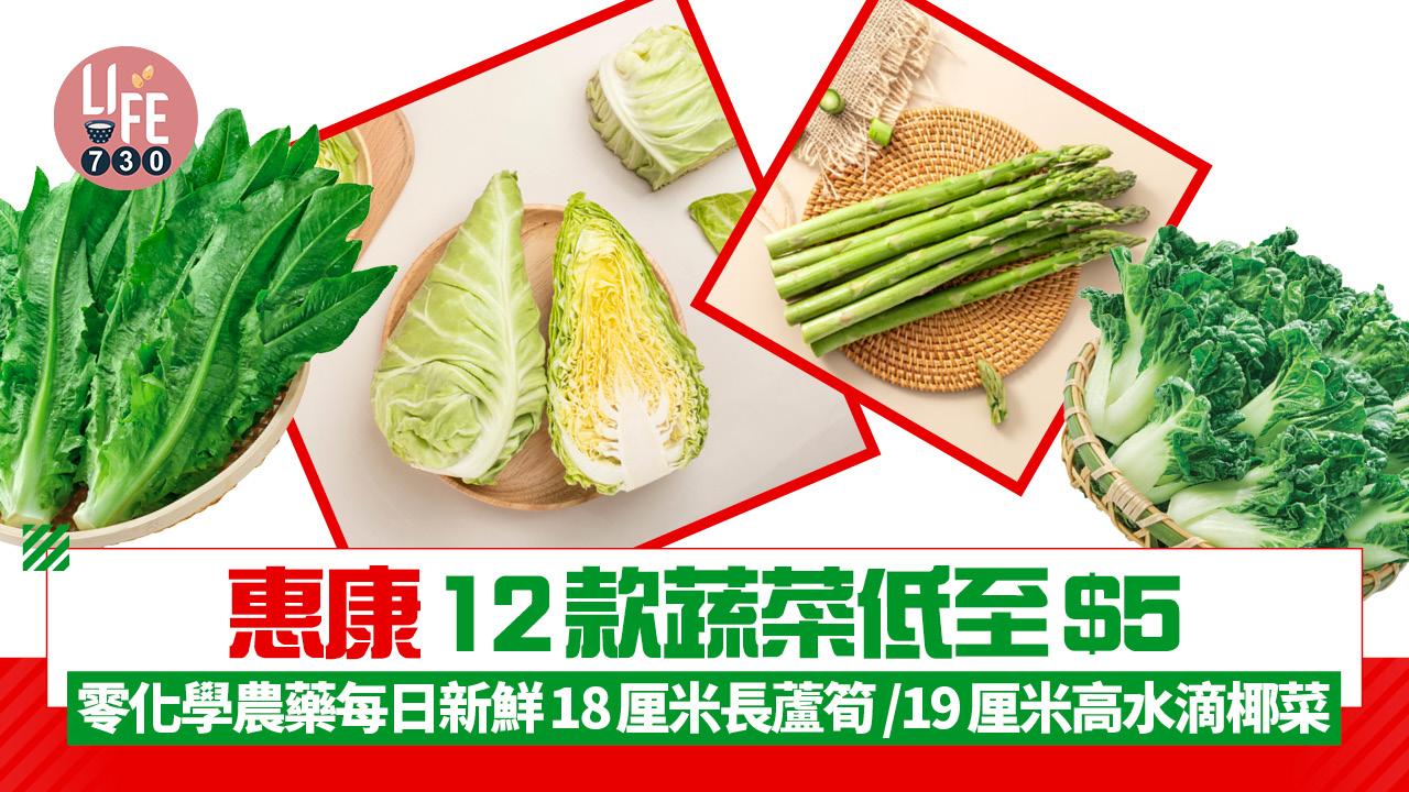 惠康12款蔬菜低至$5 零化學農藥每日直送 18厘米長蘆筍/19厘米高水滴椰菜