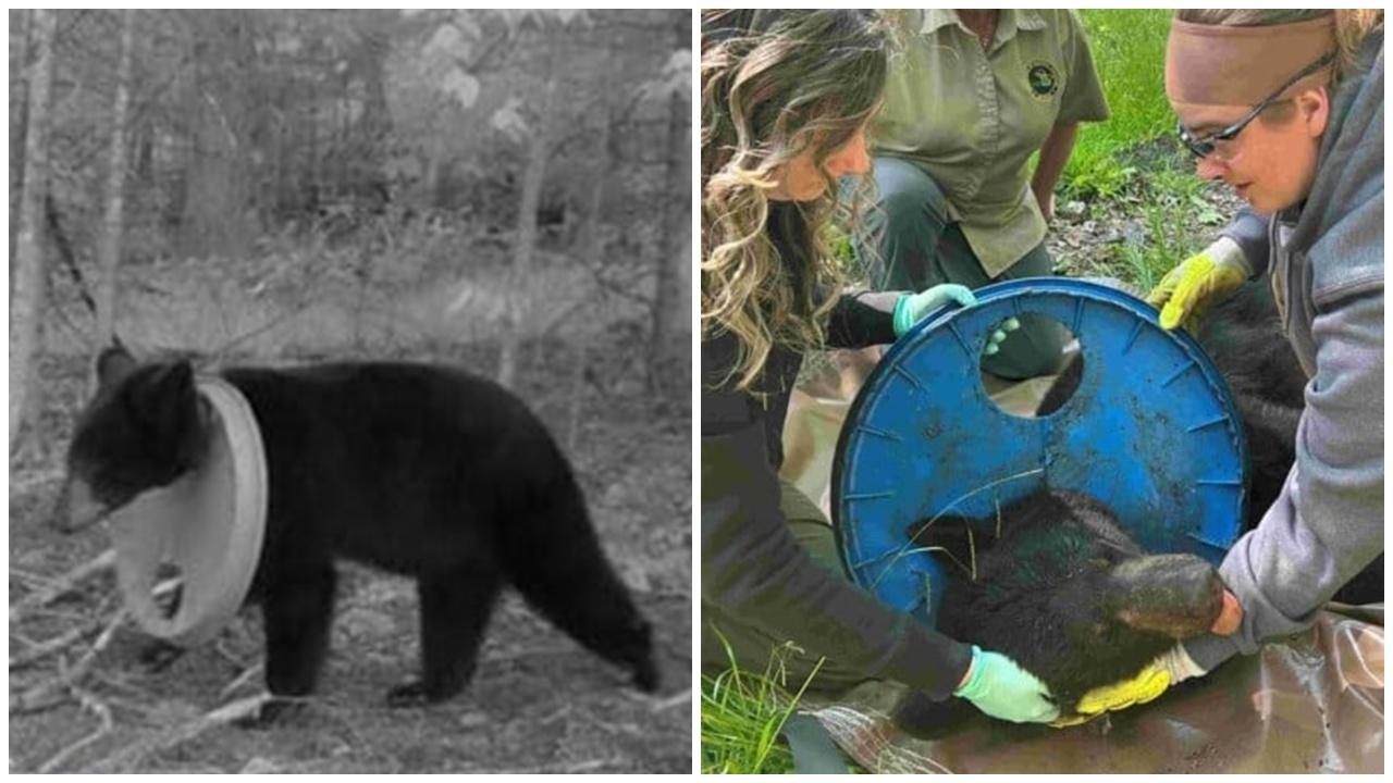 黑熊頸卡膠蓋受困2年 終獲救助擺脫枷鎖