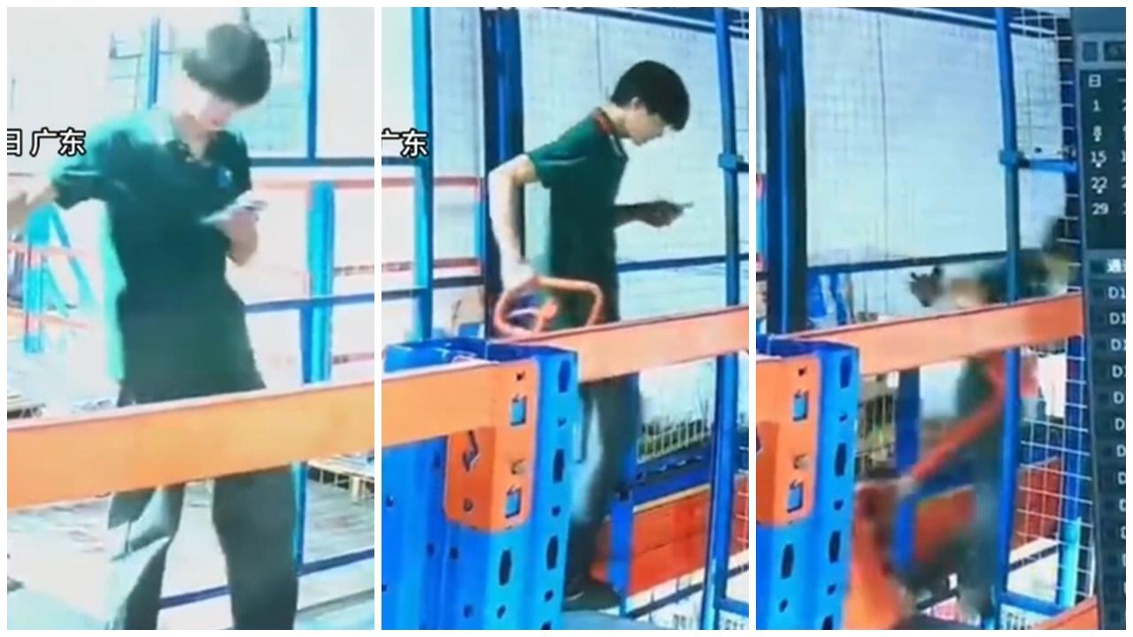 工人顧住低頭玩手機 踏空連人帶板車墮𨋢槽(有片)