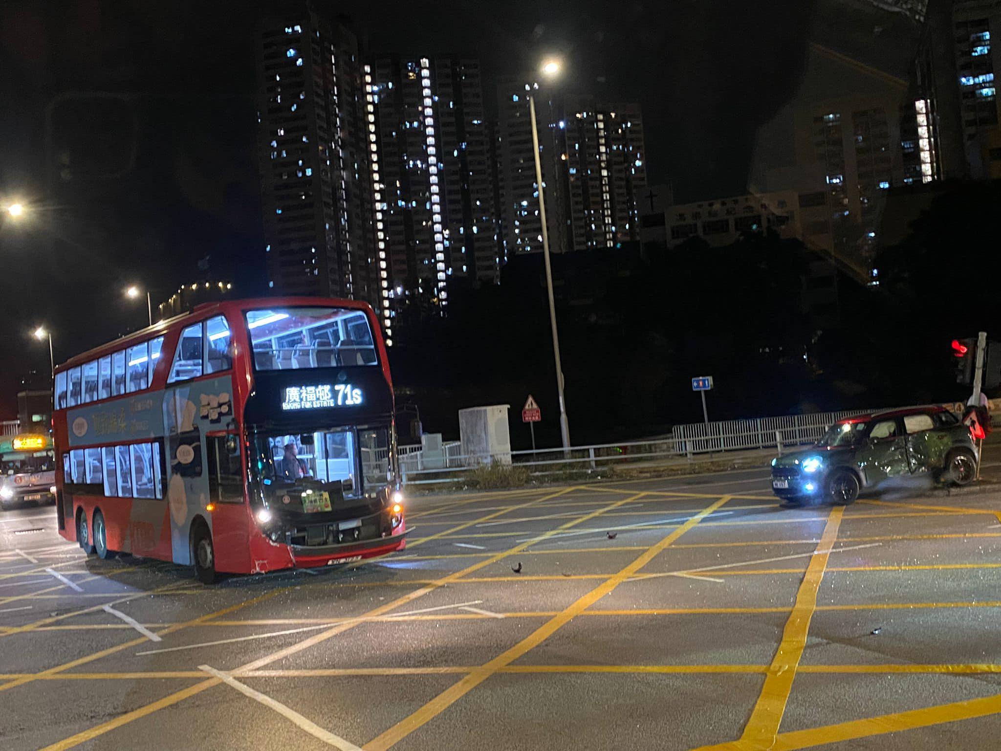 車Cam直擊|大埔MINI Cooper與九巴相撞 自轉撼向交通燈
