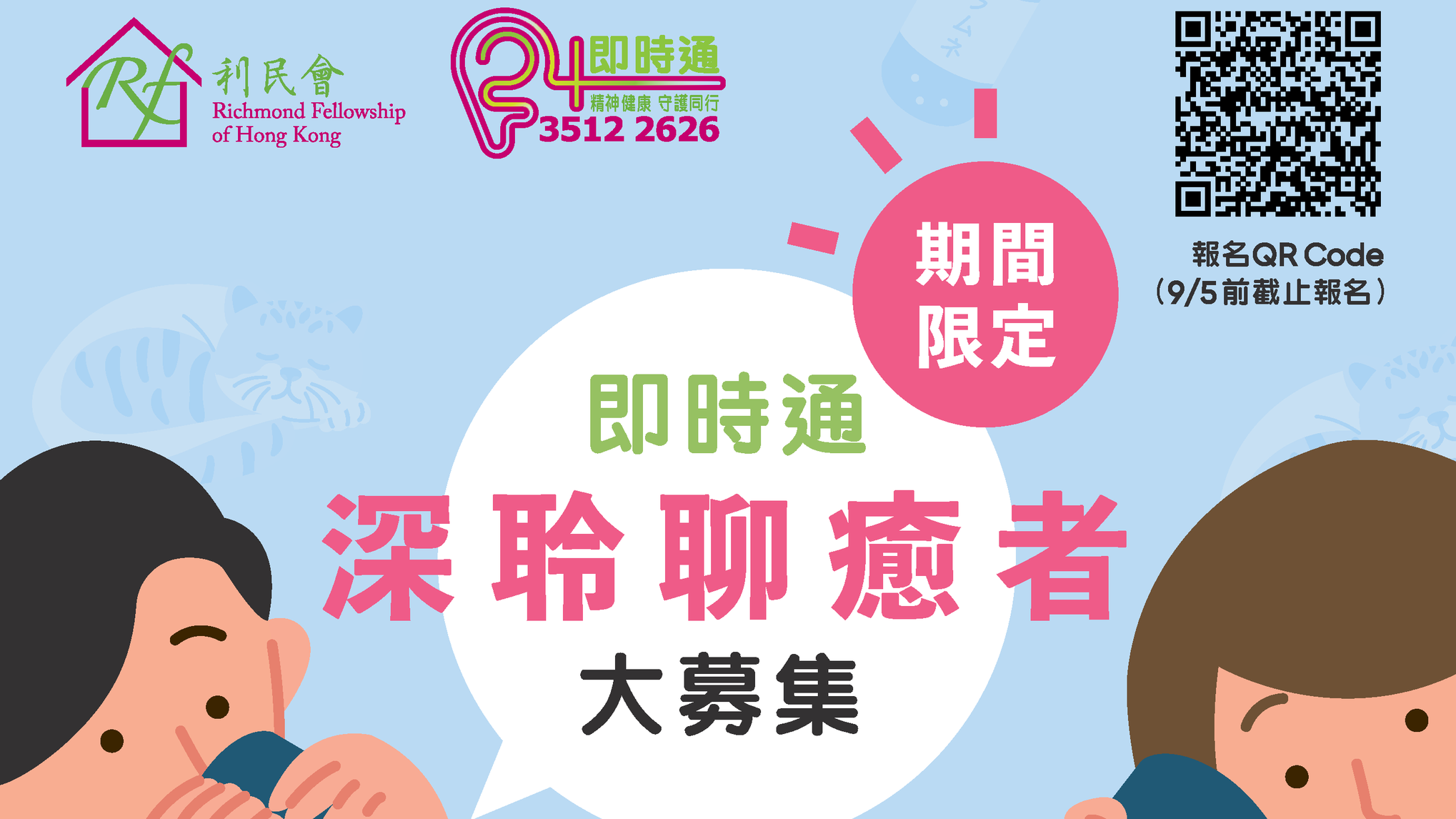 招募「深聆。聊癒者」熱線義工 第一線把關支援社區精神健康