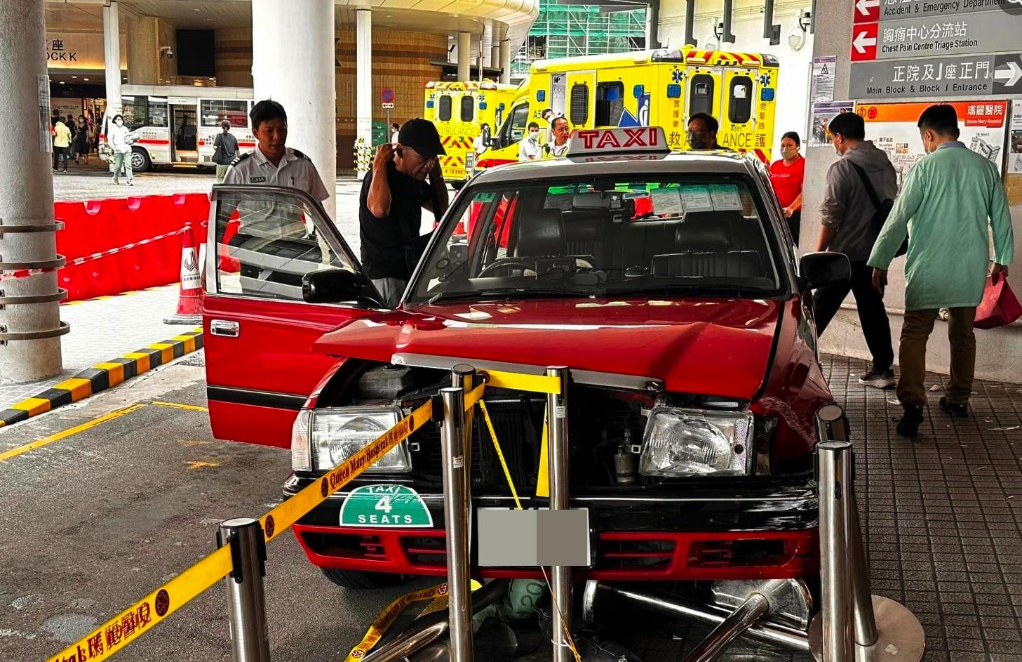 的士駛入瑪麗醫院時失控 撞牆剷上行人路無人受傷