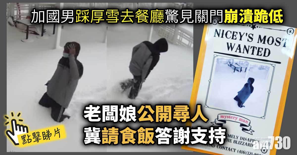 有片|加國男踩厚雪去餐廳驚見關門崩潰跪低 老闆娘:呢餐我請
