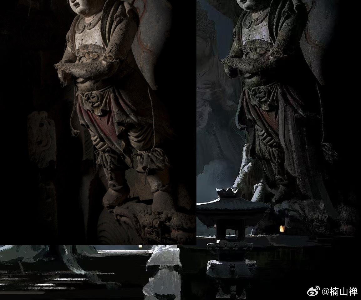 石窟、寺觀、博物館造像博主「楠山禪」22日也在微博發文,將過往拍攝的圖片與遊戲畫面進行對比。楠山禪稱「悟空您好,在使用猴哥的圖片時,未告知本人,看到請聯繫,謝謝」,並直接Tag製作人馮驥與《黑神話》的帳號。