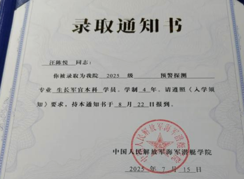 綜合內媒報道,這10名女生分別來自江蘇、山東、浙江、湖南等地,成績優異,海軍在官方微信表示:「她們將在這所中國最神秘的軍校之一,開啟人生新篇章,為海軍潛艇力量注入新的活力。」