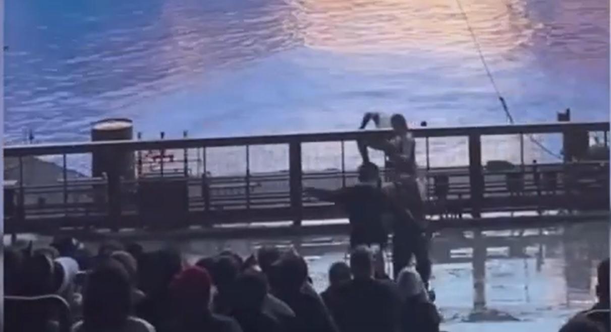 北京環球影城「未來水世界」周二下午一場表演中,一名坐前排的十多歲少年疑入戲太深,見反派角色欺負女主角,竟起身一腳踢向對方下背,對方隨即扶著下背跌坐地上。現場觀眾以為是表演效果,發出陣陣笑聲,直到被踢的反派角色做出「暫停」手勢,表演中止,才知道「有人鬧事」。