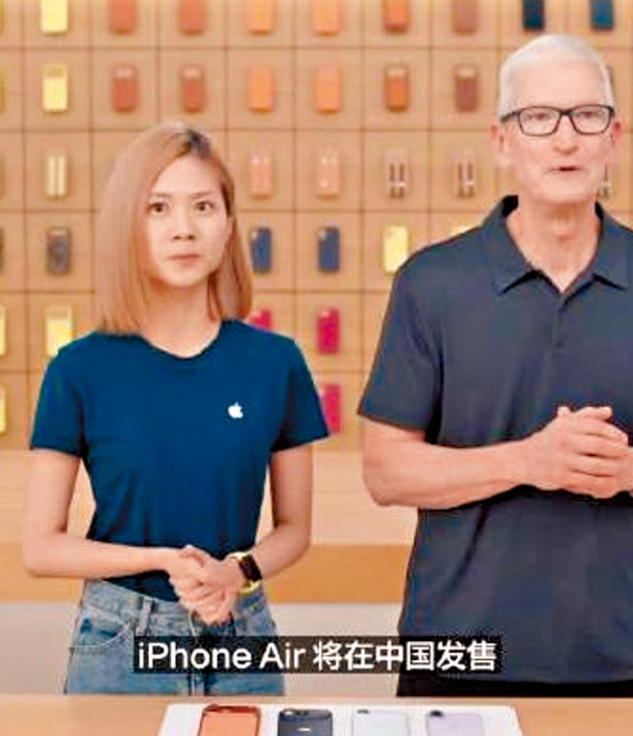 庫克也到訪其中了一間蘋果商店,並首次現身蘋果商店官方抖音平台直播帶貨宣傳iPhone Air。他在直播中說︰「我在下午剛到上海,有機會來到我們的門店,很好可以聯繫我們團隊及顧客。每次我來到都受到熱情歡迎,這是我喜歡的。」庫克亦與其他蘋果員工一起以新款iPhone自拍,並分享自己最喜愛的攝影功能。