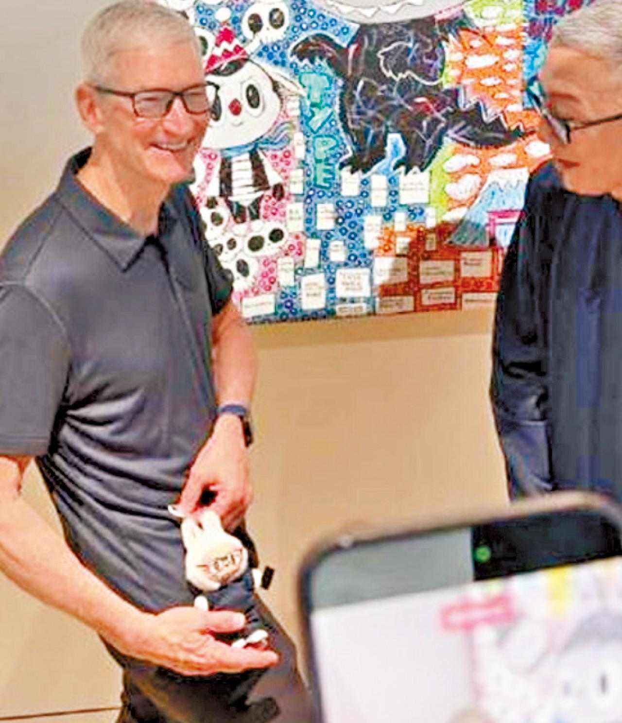 內媒指,龍家昇向庫克示範如何在蘋果的iPad上繪製Labubu;王寧則向庫克送贈一隻特別版的白色Labubu公仔,它穿著深藍Tee、黑色褲、帶上黑色粗框眼鏡,衣著像庫克,左手還拿着一部橙色的iPhone 17 Pro手機。庫克亦相當配合,表現得很興奮。