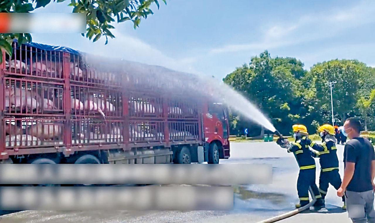 一些動物也熱到中暑。江蘇常州溧陽周二高溫達40.2度,有運豬車司機報警求助,指兩車從內蒙古運往浙江的生豬熱到就快變「燒豬」,消防員出動射水約40分鐘,為百幾隻豬降溫(圖1)。蘇州就有網民將一隻螞蟻捉到被太陽暴曬至65度的地面,螞蟻一落地就亂竄,約3秒後死亡。南京則有民眾常溫存放的「活珠子」(類似香港的「鴨仔蛋」)因太熱而孵出一隻黑色小雞(圖2)。