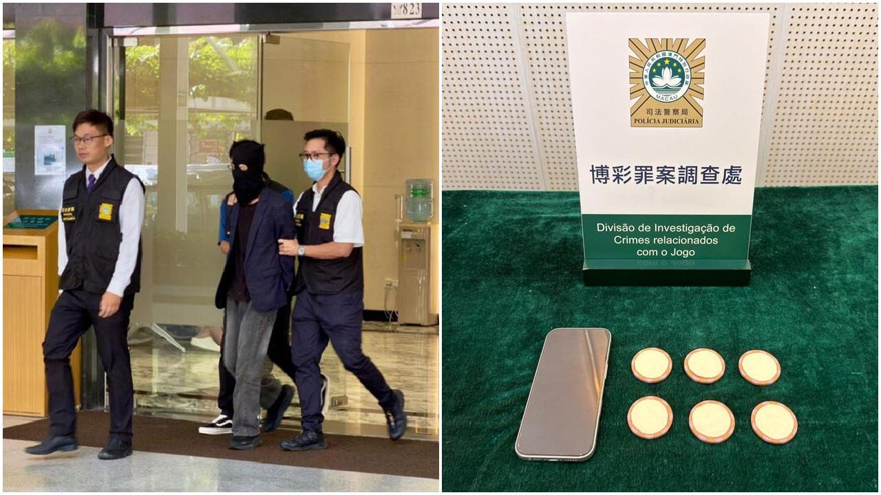 澳門司警拘捕1名26歲內地男子,涉嫌在娛樂場內使用偽造的籌碼詐騙賭客。(澳廣視)