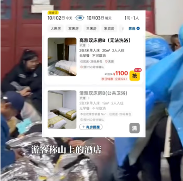 住宿問題同樣引發關注,一名遊客表示,山上的酒店價格普遍在千元人民幣(約1,093港元)以上,且大部分早已訂滿,但有酒店提供「坐席過夜」,即坐在酒店大廳,但要收每人60元人民幣(約65.6港元)。