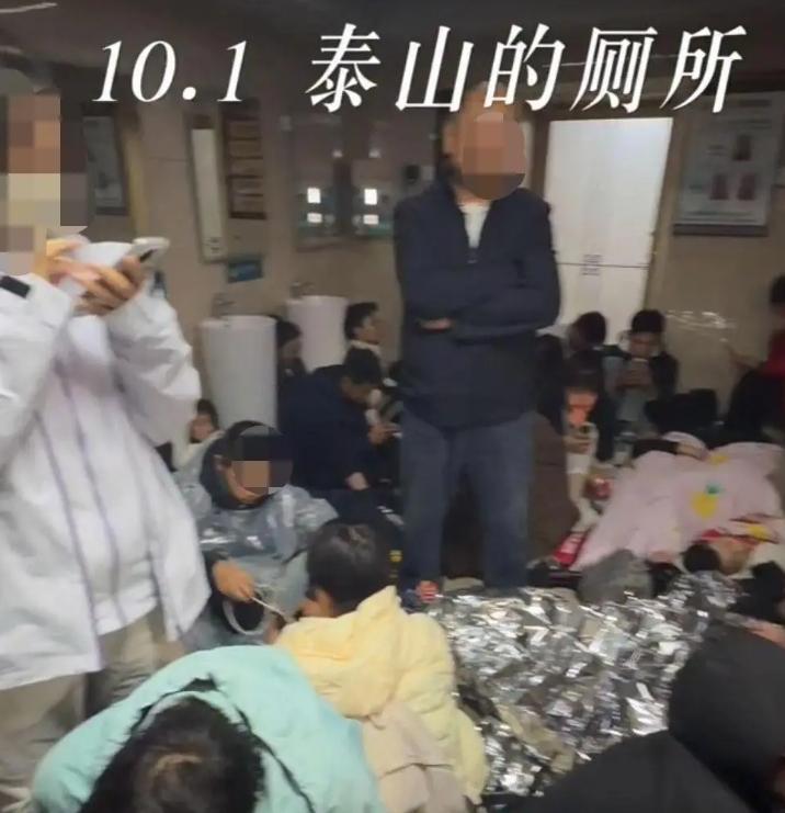 山東省泰山景區1日突遭降雨並伴隨大風,山頂氣溫驟降至接近0℃,導致十一假期湧入的大量遊客,無處避雨,有遊客透露,當時連「廁所都坐滿人」,大家十分狼狽。