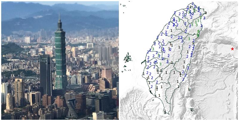 台北的建築物在地震中搖晃,有民眾說地震當下正在駕駛等紅燈,突然整架車車身左搖右晃,時間長達20秒,十分可怕,另網民表示「感覺超晃,都被搖醒了」、「我嚇到爬起來躲餐桌下」、「好險震央在外海,這深度超級無敵淺」。