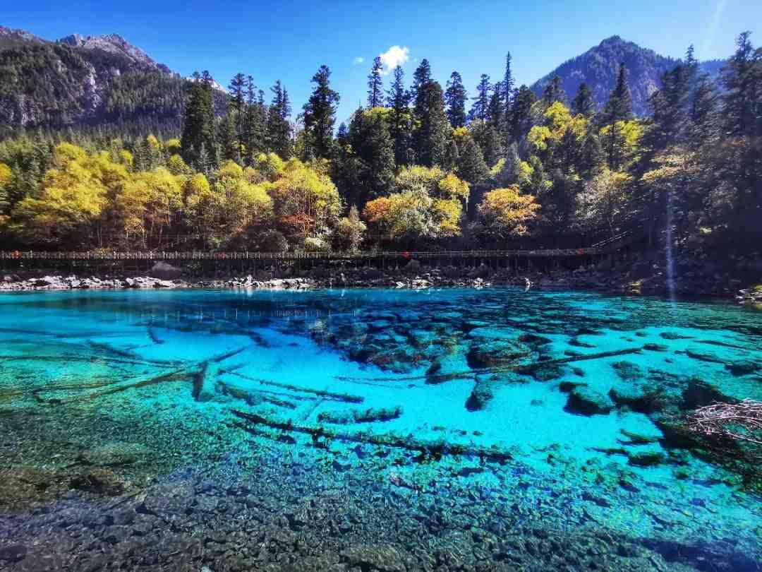 秋天的九寨溝美不勝收,但國慶期間只得211人遊覽。(九寨溝管理局微博)