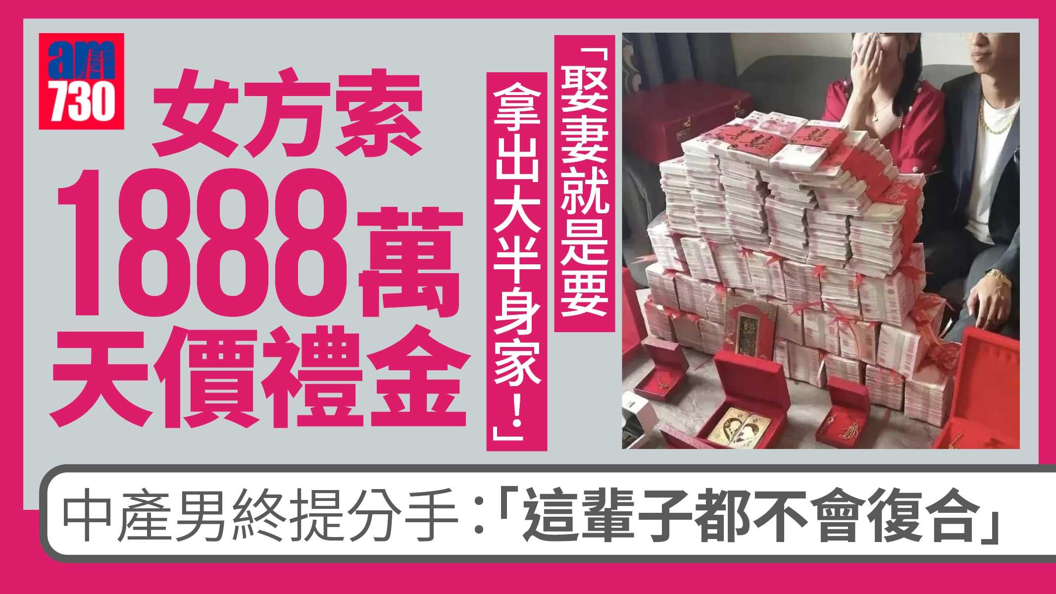 事主表示,前女友父母開出的條件是1,888萬現金禮金、事主名下價值4,500萬物業(事主父母全額購買)過戶到女方名下、在女家當地買一間物業讓女兒回去探親時住(目測數百萬元)、上百位親戚每人10萬元利是(改口費)、Ritz-Carlton酒店婚禮、親戚來觀禮要坐頭等艙,還要求每生一名子女獎勵1,000萬元現金和一間價值不少於2,000萬元的物業。