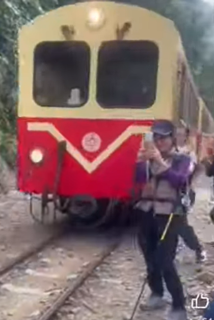 台灣著名景點阿里山幾乎發生「打卡奪命意外」!一名婦人在山上拍照時,疑太過忘我,身後火車已響鞍接近20秒,婦人仍然沉醉於擺甫士打卡的美妙感覺之中,最終被火車擦撞至整個人轉體180度跌低,場面極度驚險,幸婦人大難不死未有被火車輾過。