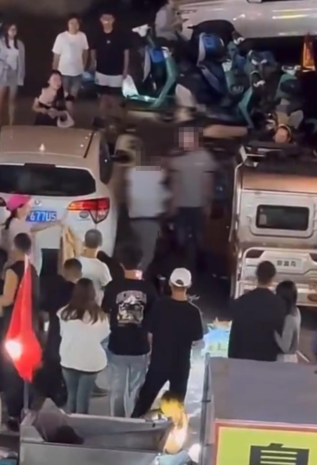 綜合內媒報道,事發於28日晚間,山東濰坊高密市小康河附近一夜市。網傳影片顯示,一名身穿條紋上衣的小販,與一名灰衣男子爆發激烈口角衝突,一旁還有疑似小販家人的黑衣女子,抱着一名男孩。灰衣男情緒瞬間失控,竟然揮長刀砍向條紋男的脖子。條紋男被砍後瞬間爆血,周圍圍觀的民衆驚嚇四散。