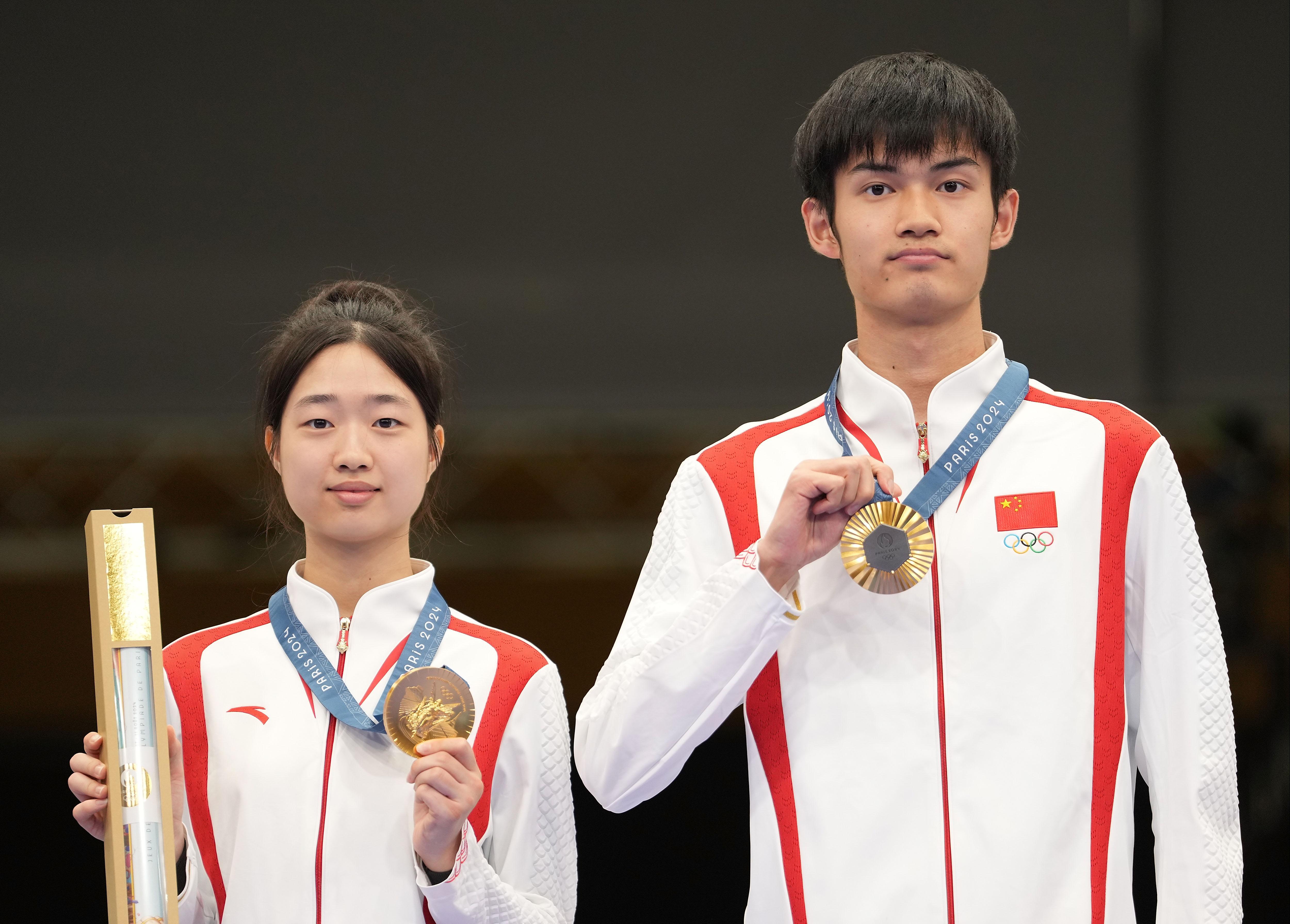 黃雨婷/盛李豪取得巴黎奧運射擊混合團體10公米空氣步槍金牌。