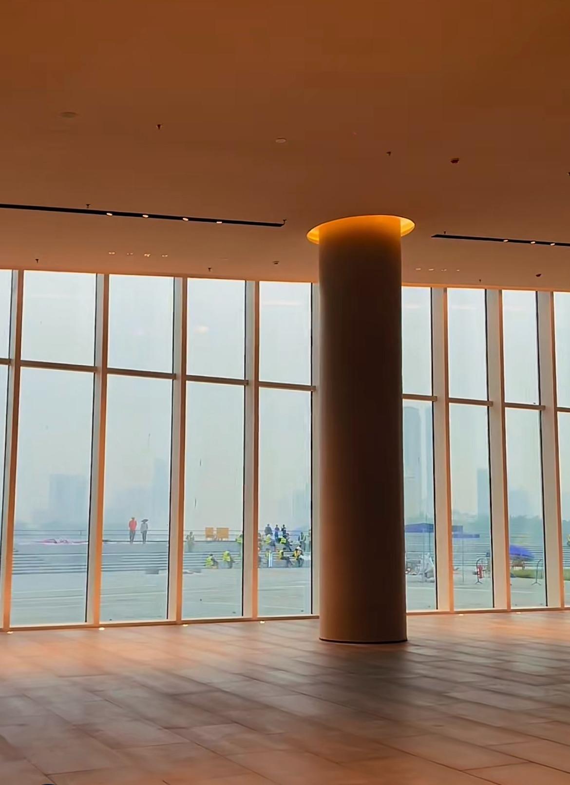 白天鵝的鵝頸部分的,就是樓高11樓的廣東美術館。這裏展陳面積達到1.9萬平方米,比香港藝術館的展覽空間多近一倍。廣東美術館配置有一個能夠容納350人的大展廳,能夠滿足中外作品展發布、國際化報告、文藝演出等項目。