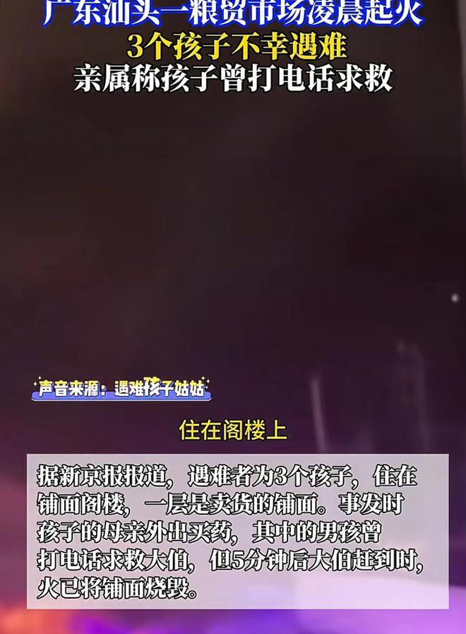 廣東汕頭市場大火燒死3童 孩子曾致電大伯求救