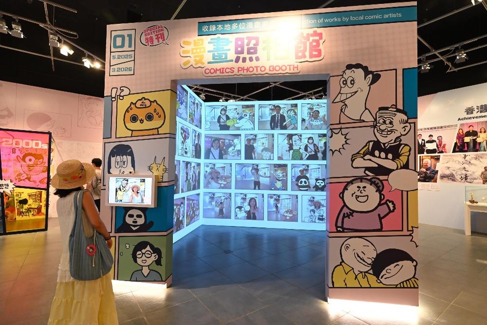 在沙田香港文化博物館舉行的「漫眾同樂—幽默港漫格格趣」展覽中,觀眾可以在漫畫照相館走進漫畫書的畫框內。(圖片來源:政府新聞處)