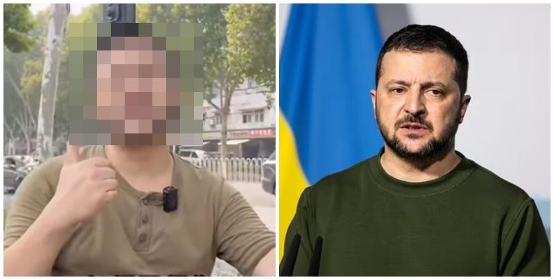 湖北武漢一名男子因長相酷似烏克蘭總統澤連斯基,早前在網上拍攝搞笑短片爆紅 (影片截圖/路透社)