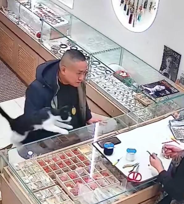 流浪貓變身飾物店王牌Sales,客人一到又黏又嗲上埋膊。(微博)