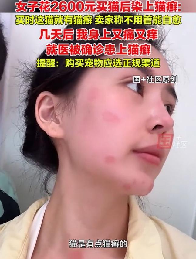 浙江嘉興一名女子花費2,600元人民幣(約2,843港元)購買一隻寵物貓,卻因信任賣家「貓癬不用治療會自行痊癒」的說法,導致自己也遭到感染,臉部出現大片紅斑。