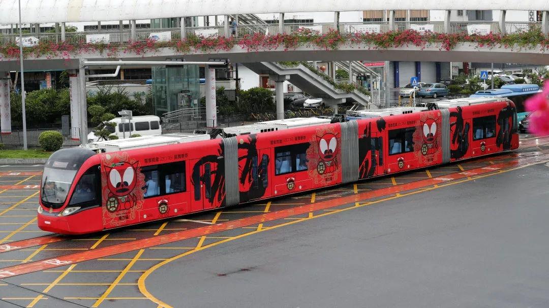 列車只有四卡,能容納300人,屬低地板超級電容鋼輪鋼軌制式的純電動車。鋼鐵的「身軀」就像動漫裏的電車一樣型格,行走時不時發出「叮叮」聲響,在滾滾車流中顯得相當「悠閒」,自成獨特風景。