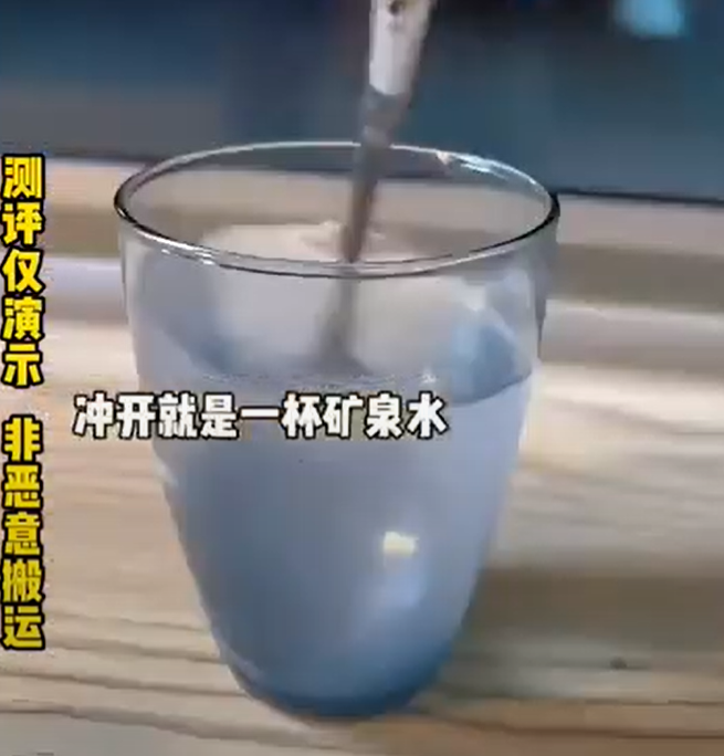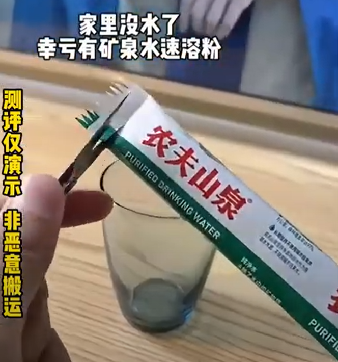 自上月起,「速溶礦泉水」開箱試飲片在內地湧現,主旨幾乎都強調它非常方便飲用,感恩「家裡沒水了,幸虧有礦泉水速溶粉」。