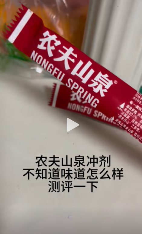 各片段都用了內地品牌「農夫山泉」的「礦泉水速溶粉」來開箱,但有些片段的速溶粉呈白色、有些呈啡色,有些則呈紅色,而且口味亦各異。