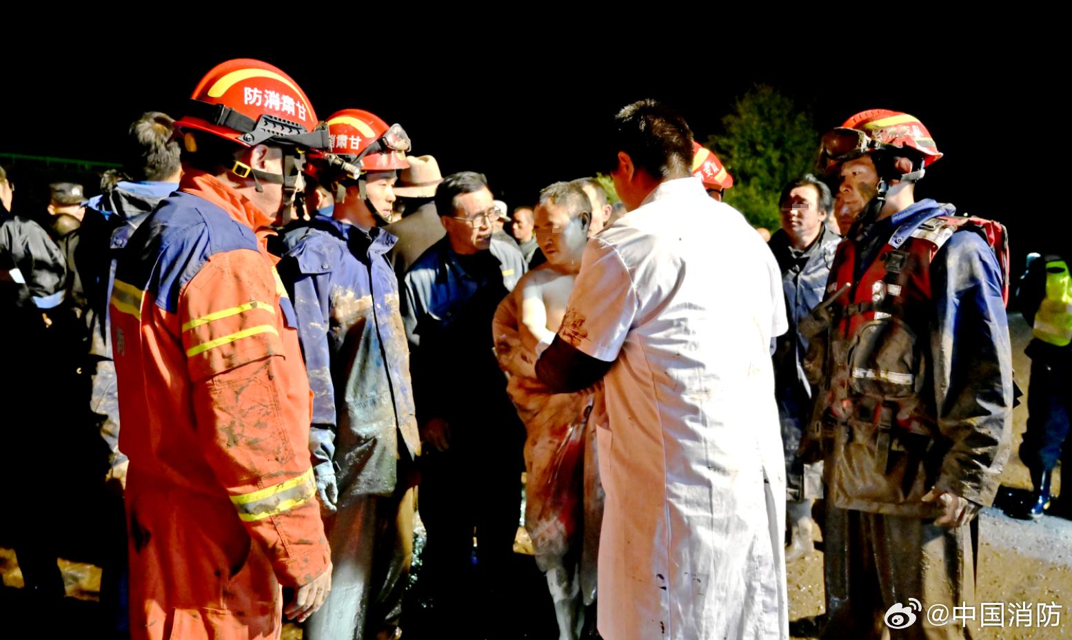 事發後,官方調派應急、消防救援力量展開人員搜救工作。(圖/翻攝微博@中國消防)
