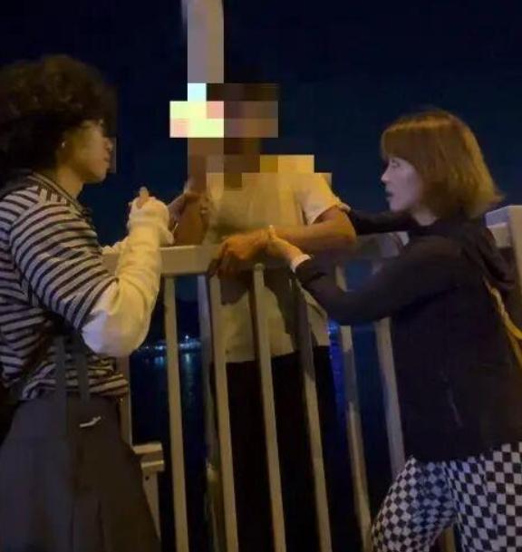 胡女與友人緊緊拉住要跳橋的男子(中)。(圖/翻攝《網易》)