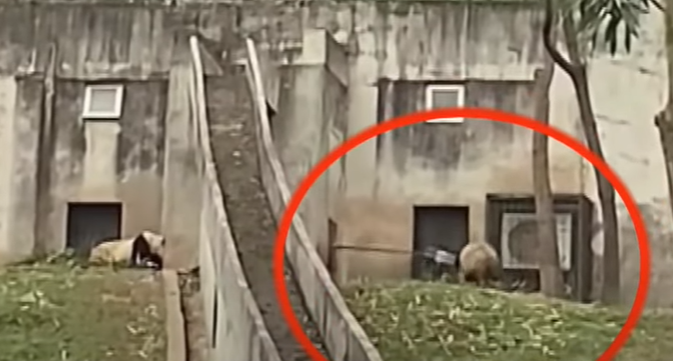 位於陝西省的秦嶺大熊貓研究中心被遊客拍片揭發,有工作人員用鐵鏟攻擊大熊貓。(影片截圖)