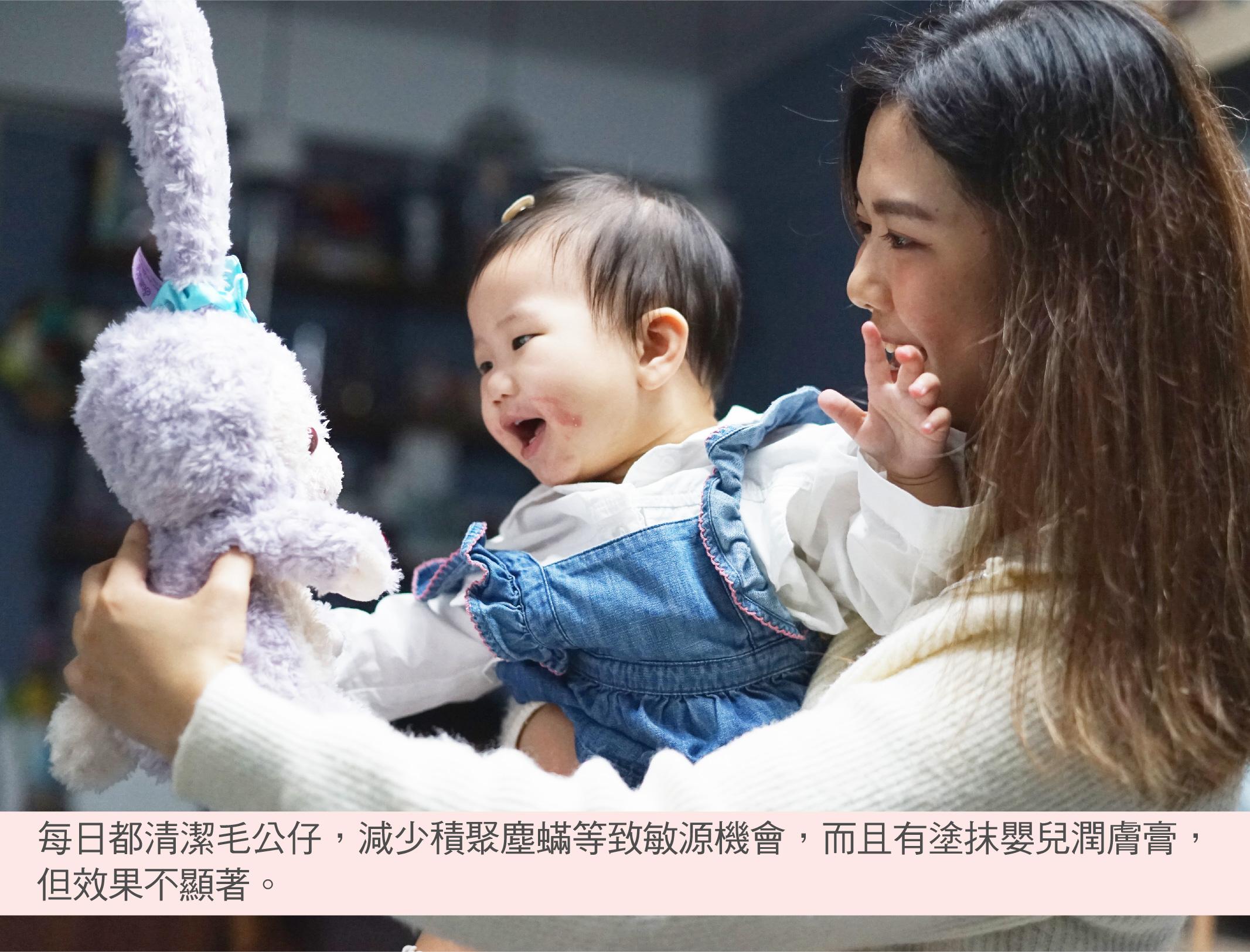 雖然Candy 已經頻繁地為 Xanthe 剪指甲及帶手套,每日都清潔毛公仔,減少積聚塵蟎等致敏源機會,而且不時為Xanthe塗抹嬰兒潤膚膏,但效果不顯著。為了紓緩症狀,有醫生建議Candy可為囡囡轉用類固醇,Candy深知類固醇的確有效,惟擔心長期依賴類固醇不但會造成類固醇依賴,更有可能引起一連串副作用,如︰皮膚變薄,影響骨骼生長、有機會引致血糖高或血壓高後遺症等。故此,Candy希望用較天然溫和方式醫治囡囡濕疹。