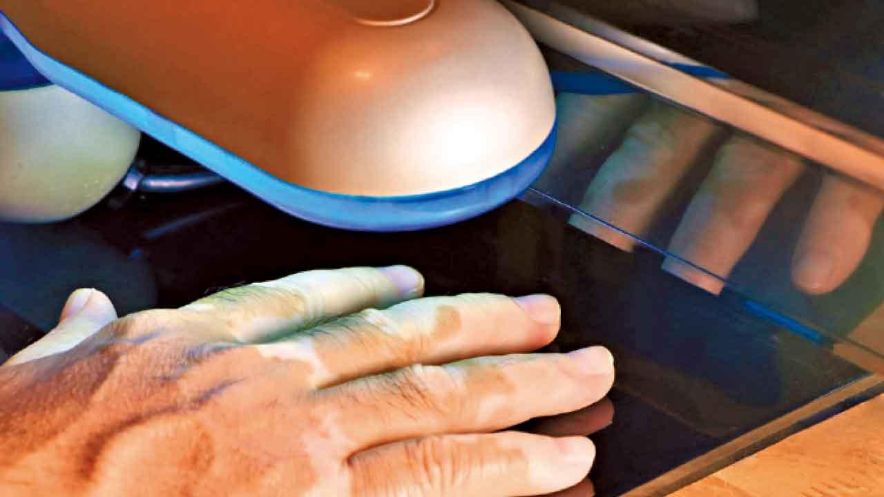 陳湧坦言,傳統治療的效用不大,而且有其局限,「紫外線光學治療可增強黑色素細胞活性,但每周須照燈2至3次,療程最少3至6個月;另會使皮膚老化,同時正常皮膚亦會曬黑,或與患處成更大反差, 未必人人可接受。類固醇藥膏可抗炎、促進色素沉著,但長期或使皮膚變薄、出現皺摺、容易損傷、微細血管擴張等。非類固醇免疫抑制藥膏療效亦有限。傳統治療能令白蝕不再擴大,已屬很好效果。」