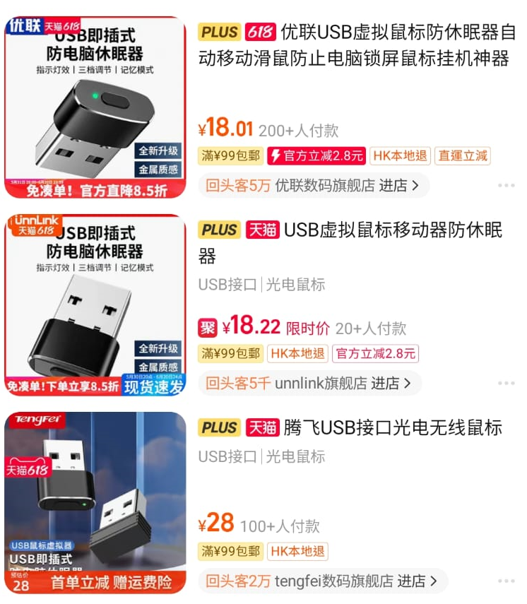 滑鼠移動器在淘寶以低至18元人民幣出售。(互聯網)