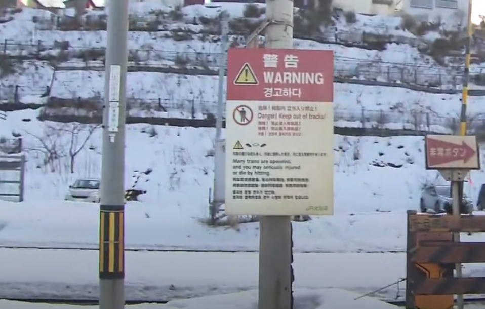 北海道一名香港遊客被列車撞倒後傷重身亡。(札幌電視台圖片)