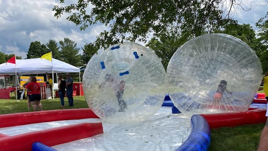 據維基百科,太空球也稱作「Zorbing」,是一項戶外娛樂活動,源自20世紀90年代的紐西蘭。參與者固定在一個透明的塑料球內,從存在一定坡度的、筆直的草坪上滾下。