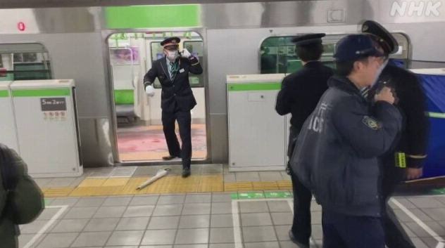 日本東京JR山手線列車,周三在下班繁忙時間車廂冒煙,乘客急疏散。