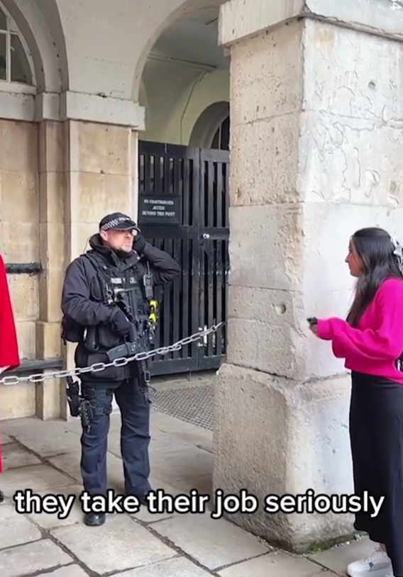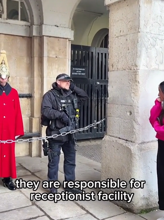 該名御林軍曾輕輕搖頭,但一直保持冷靜,未幾一名持槍特警從旁步出,該批美國女遊客未知即將會被罵,還歡呼尖叫,又開心得跳起。特警向御林軍了解狀況後,轉身向該批女子說︰「這些士兵正在為國家服務,對嗎?他們認真工作。他們負起保護這座設施的責任。他們並非給人取笑的對象。」(These soldiers serve this country, alright? They take the job seriously. They are responsible for protecting this facilty. They are not an object of ridicule.)