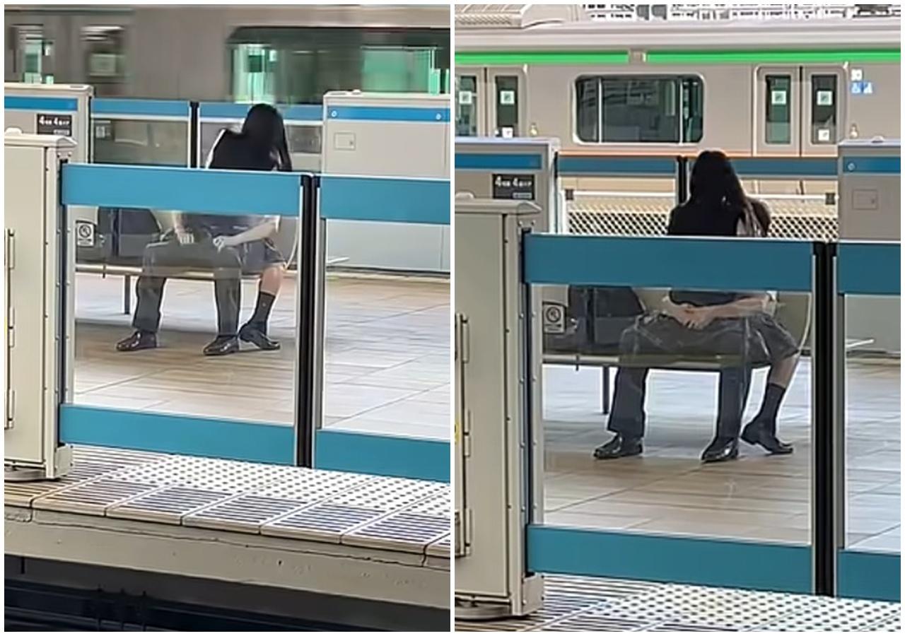 中學小情侶鐵路月台「激戰」1分鐘,網民錯重點:女方仙氣滿滿。(X)