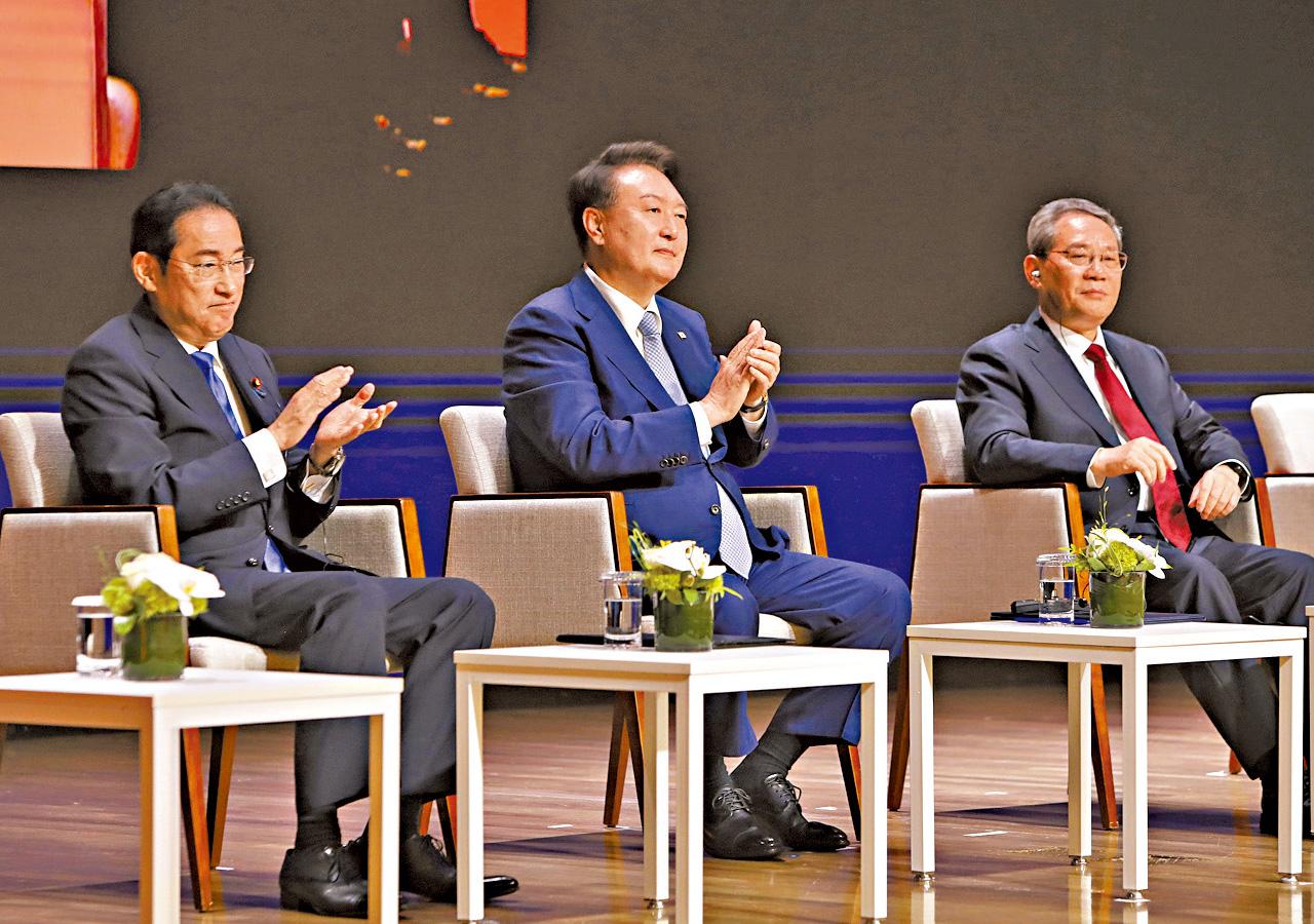 於南韓首爾舉行的第九次中日韓領導人會議昨結束,三國同意重啟自2019年停頓的三方自由貿易協議談判。這是三國逾4年來再次舉行峰會,國務院總理李強表示,在新的起點上,三方共同推動中日韓合作整裝再發、換檔提速,邁向全面發展的新征程,為地區繁榮穩定作出更大貢獻。
