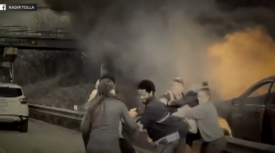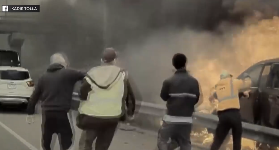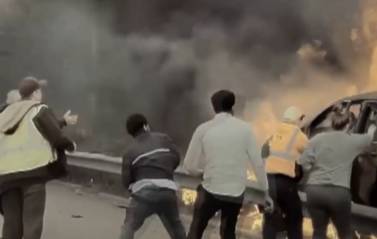 事發在周一,車cam片段顯示一輛私家車在路旁起火焚燒,多名民眾見狀立即衝向該車救人。片段是由民眾Kadir Tolla的Tesla車cam拍下,可見起火汽車的司機受困於正被火焰吞噬的車內,多名民眾拼命試圖撬開車門,有人則拿著滅火筒趕至,但奈何火勢實在火猛烈。